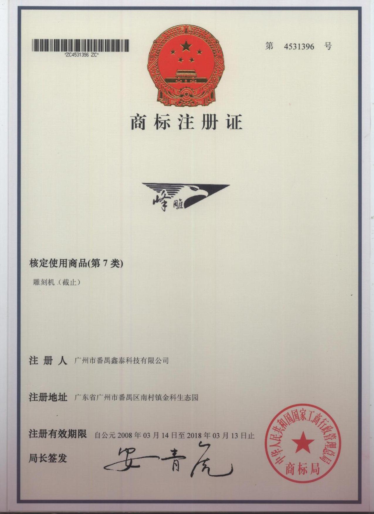 經過公司員工的辛勤努力,報國家商標局批準,廣東鑫泰科技集團喜獲第4531395號商標的商標注冊證